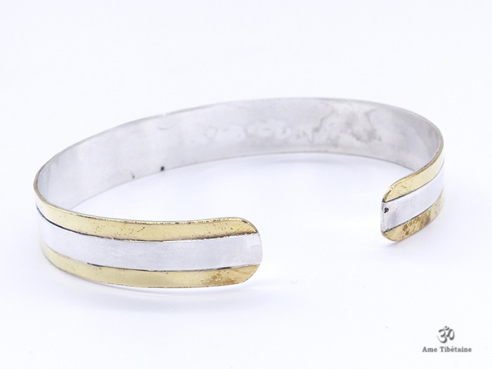 Beau bracelet en argent massif et laiton avec le mantra bouddhiste Om Mani Padme Hum.
