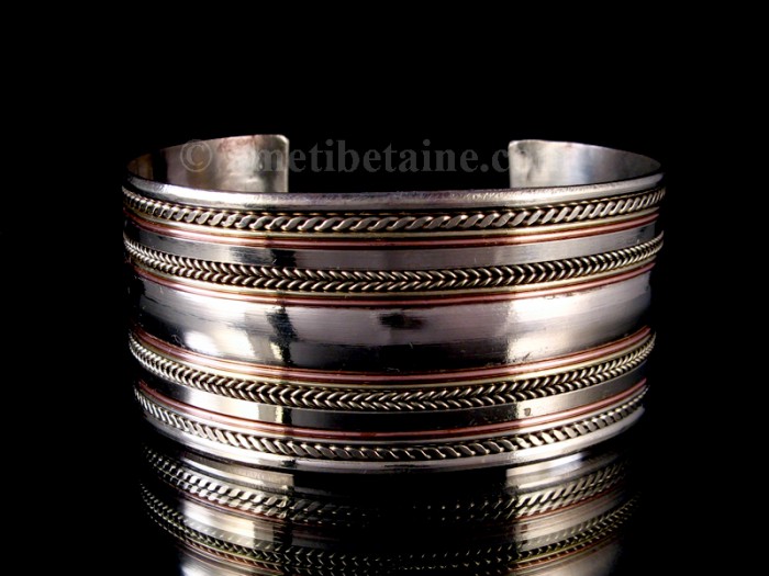 BRD182 Bracelet Tibétain Métal Argenté Cuivre Laiton