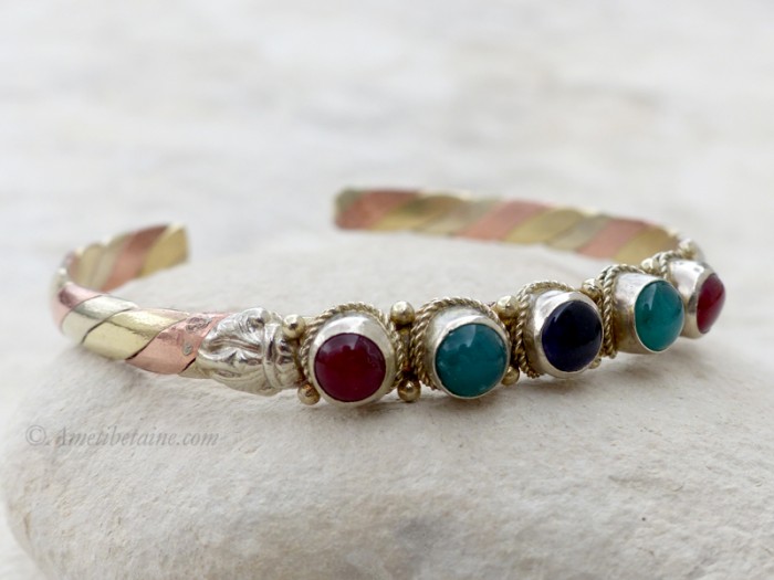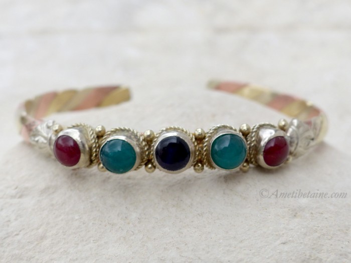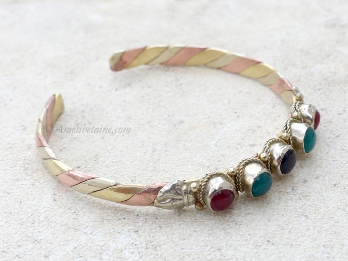 Beau bracelet tibétain, assez original, composé de 3 métaux.