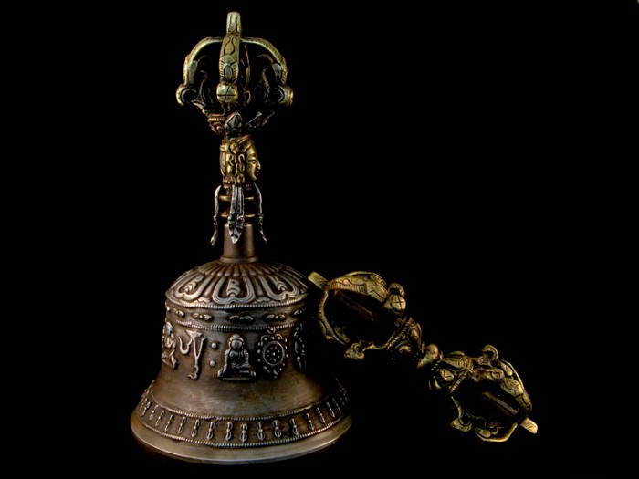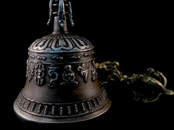 Le manche de la cloche représente la moitié d’un dorje, ou vajra.