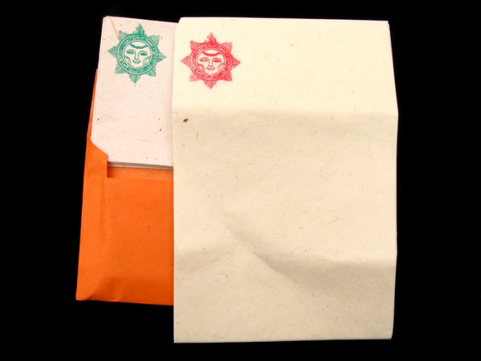 Ce papier à lettre a été fait à la main par des artisans népalais (le papier aussi est fait à la main).