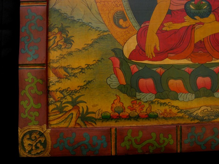 C’est une peinture sur toile, comme un thangka, qui a ensuite été collée sur du bois.