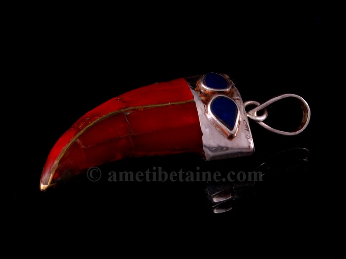 Pendentif tibétain, en argent massif, orné de corail.